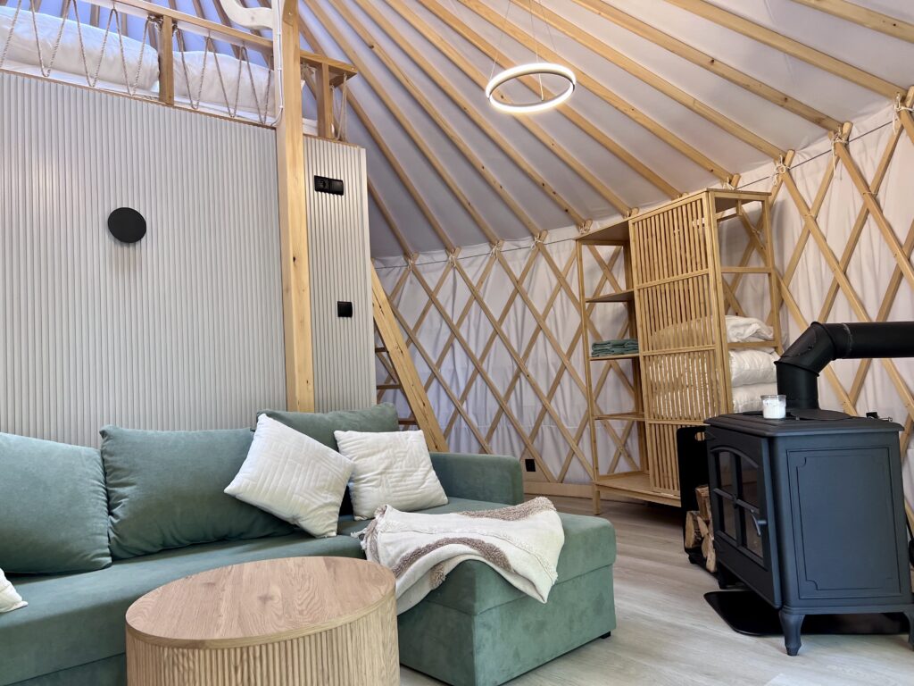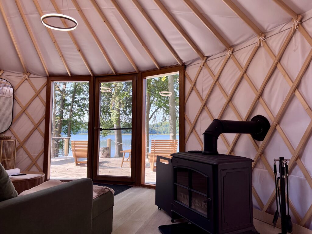 Elegancja z panoramą Wisoli. Jurta nr 3 to wyjątkowa przestrzeń, z której roztacza się widok zarówno na jezioro Wisola, jak i
