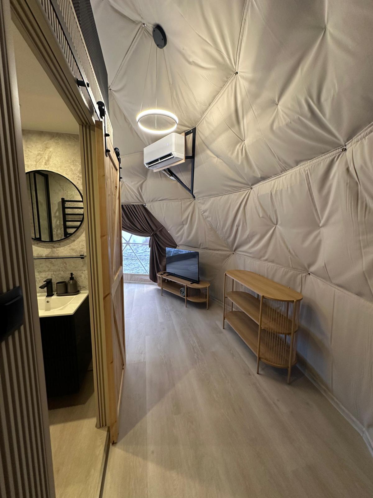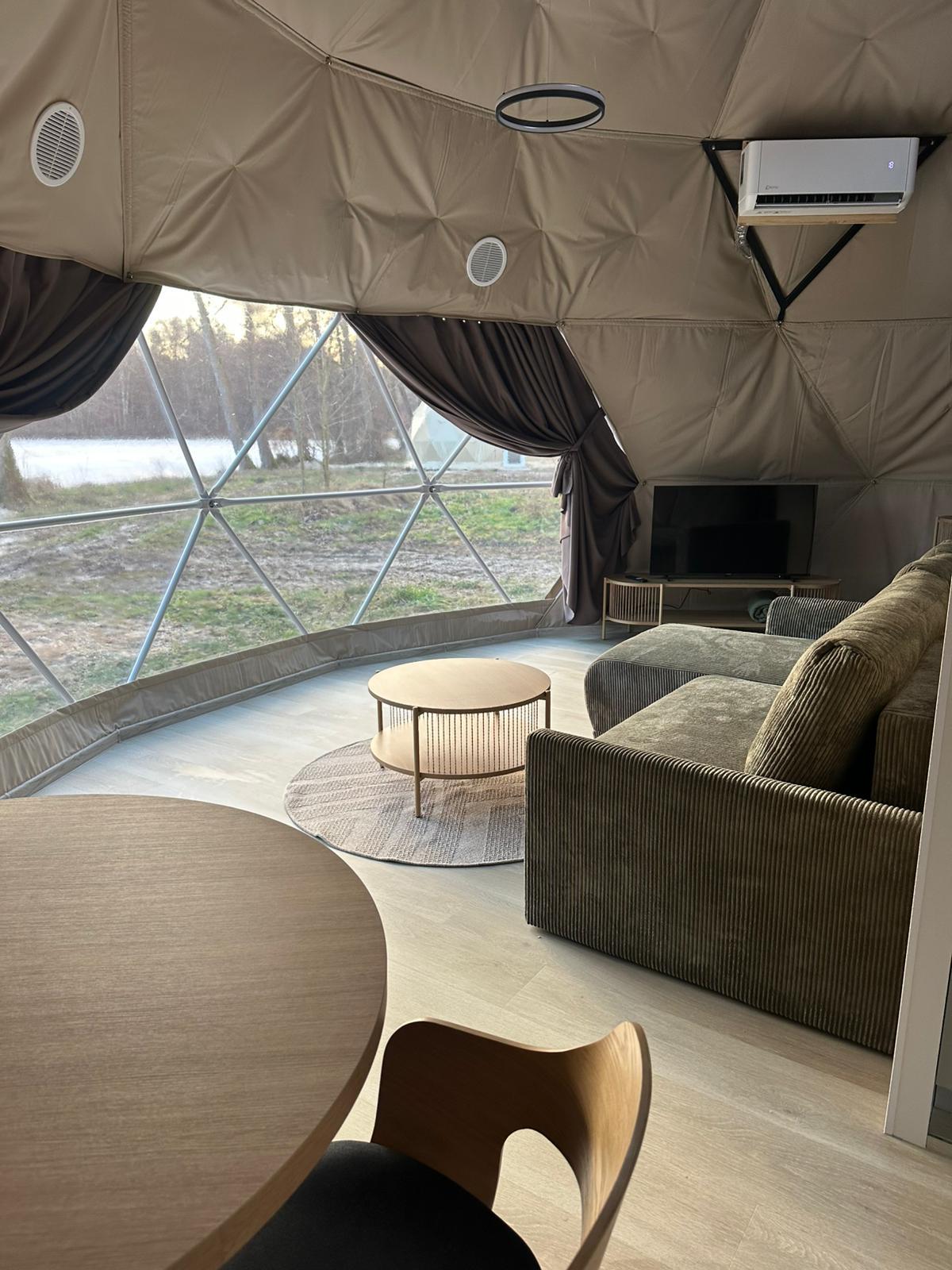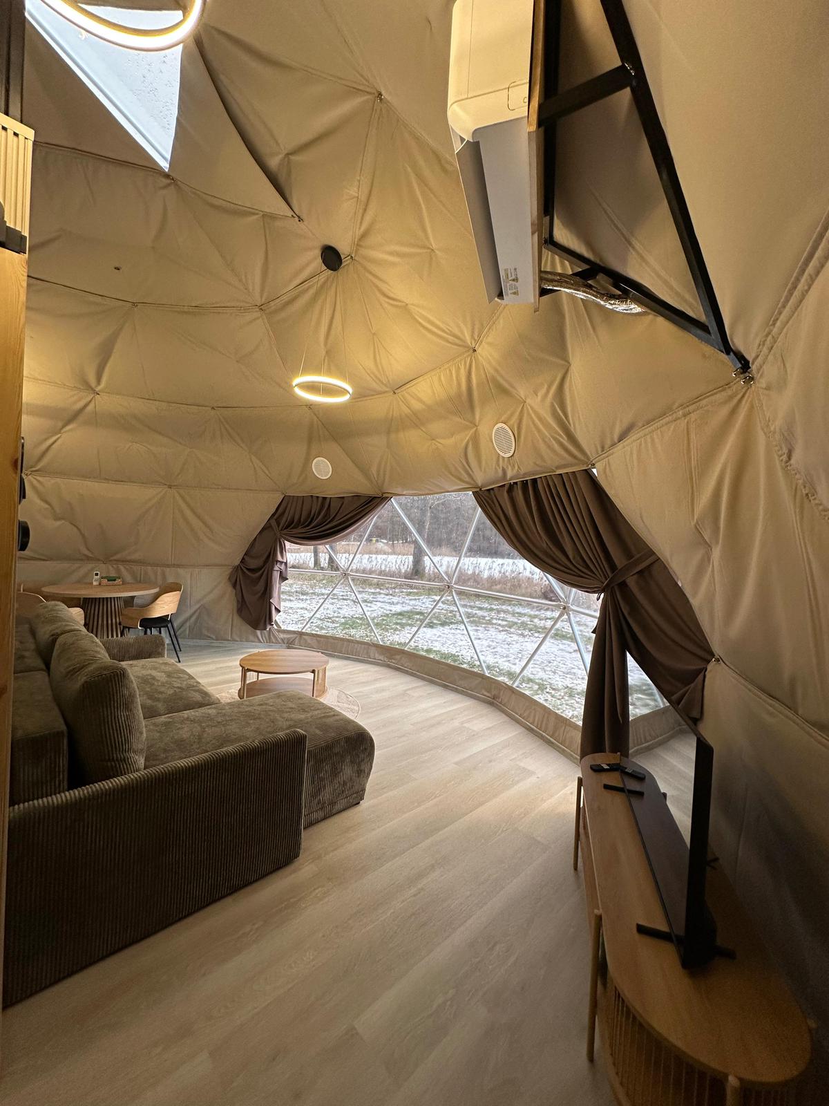 Zanurz się w atmosferze prawdziwego relaksu. Nasze namioty glampingowe to luksusowy azyl w sercu przyrody — z pełnym wyposażeniem, przytulnym wnętrzem i detalami, które sprawiają, że każda chwila jest wyjątkowa. Idealne na romantyczny weekend, spokojny reset lub magiczne noce pod gwiazdami.