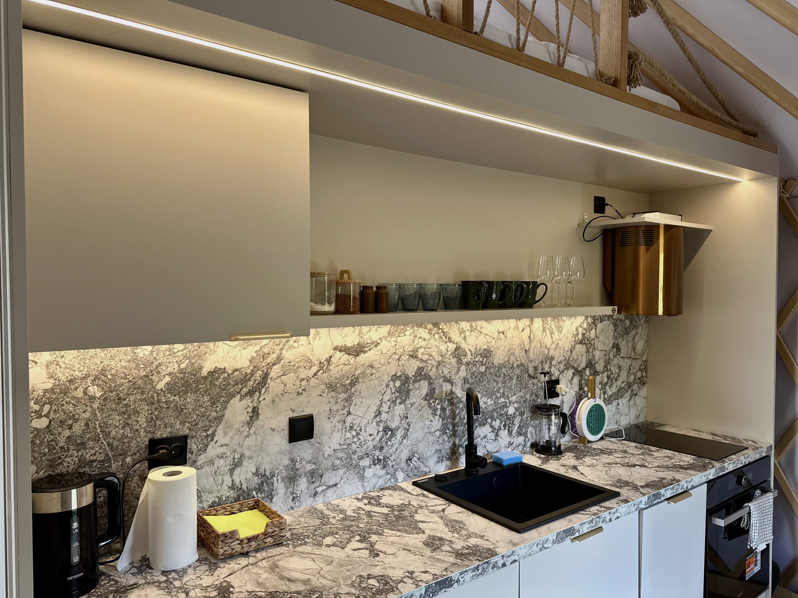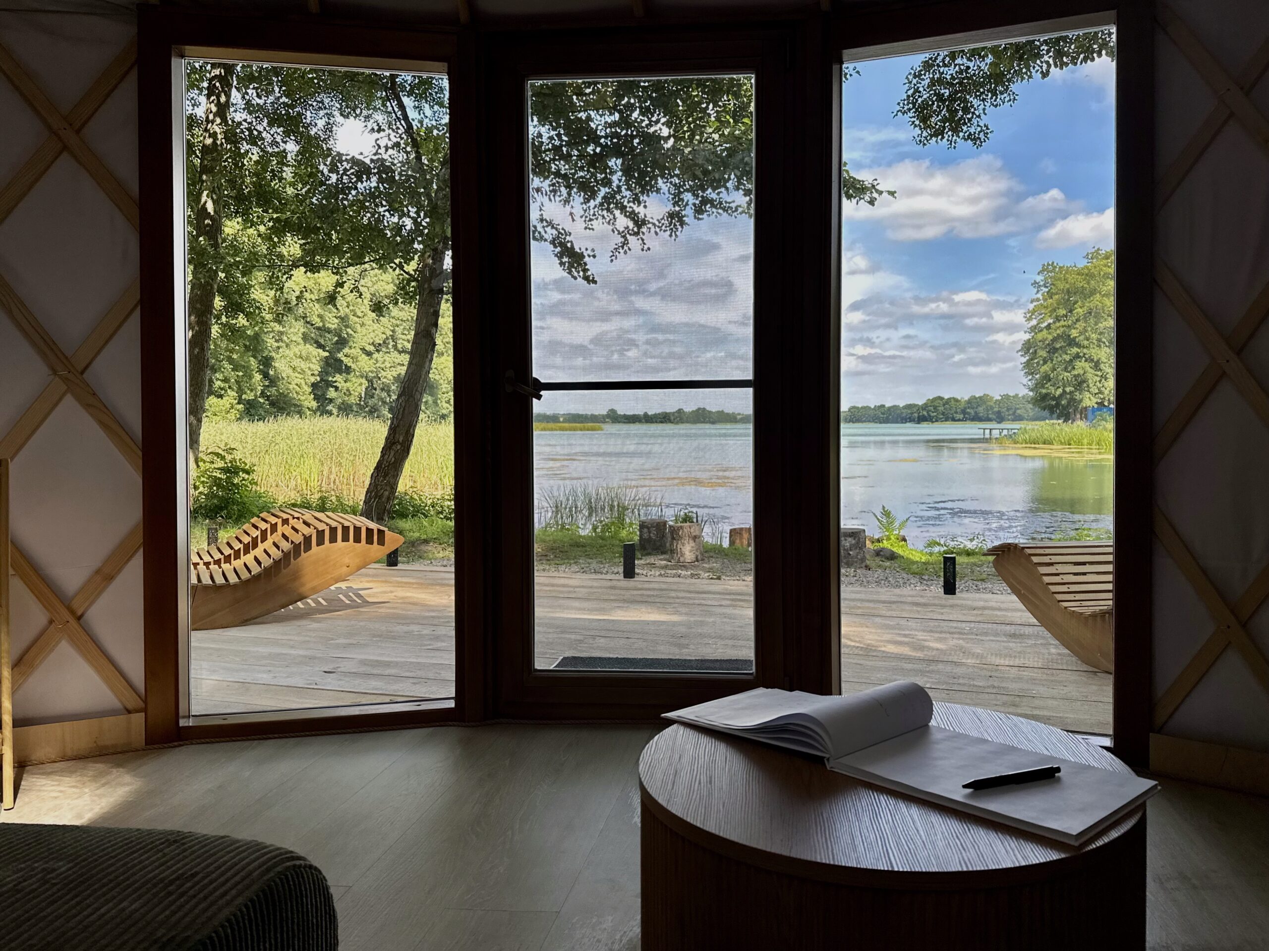 Jurta nr 3 to wyjątkowa przestrzeń, z której roztacza się widok zarówno na jezioro Wisola, jak i restaurację Panorama Wisoli. Zaprojektowana z dbałością o każdy detal, łączy w sobie nowoczesny luksus i naturalny urok. Wnętrze zachęca do odpoczynku – strefa wypoczynkowa z kominkiem, aneks kuchenny oraz łóżko na podwyższeniu z widokiem przez świetlik tworzą atmosferę romantycznego azylu. Przed jurtą czeka prywatna strefa grillowa, miejsce na ognisko i leżaki – idealne, by cieszyć się spokojem natury i widokiem na taflę jeziora o wschodzie słońca.